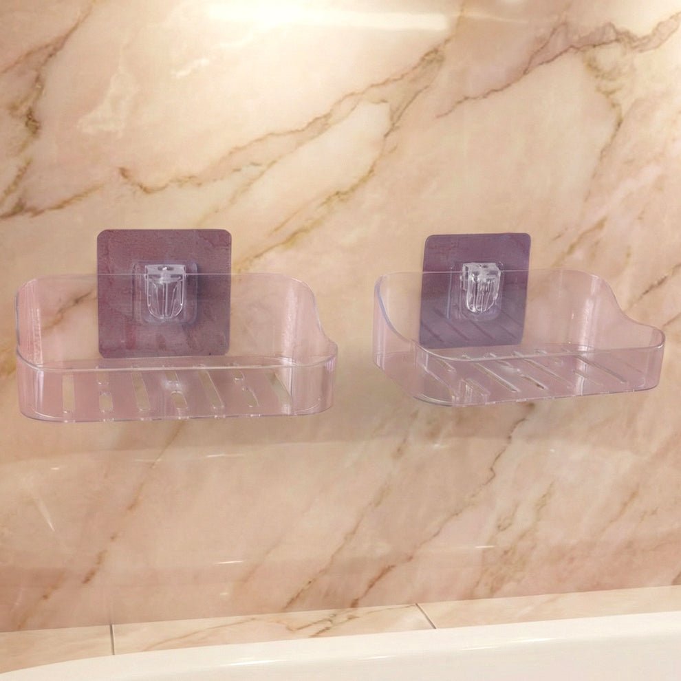 Wall-Mounted Transparent Soap Dish Holder Set – 2 Pcs – Clear Plastic Storage Rack with Strong Suction for Bathroom and Kitchen Use